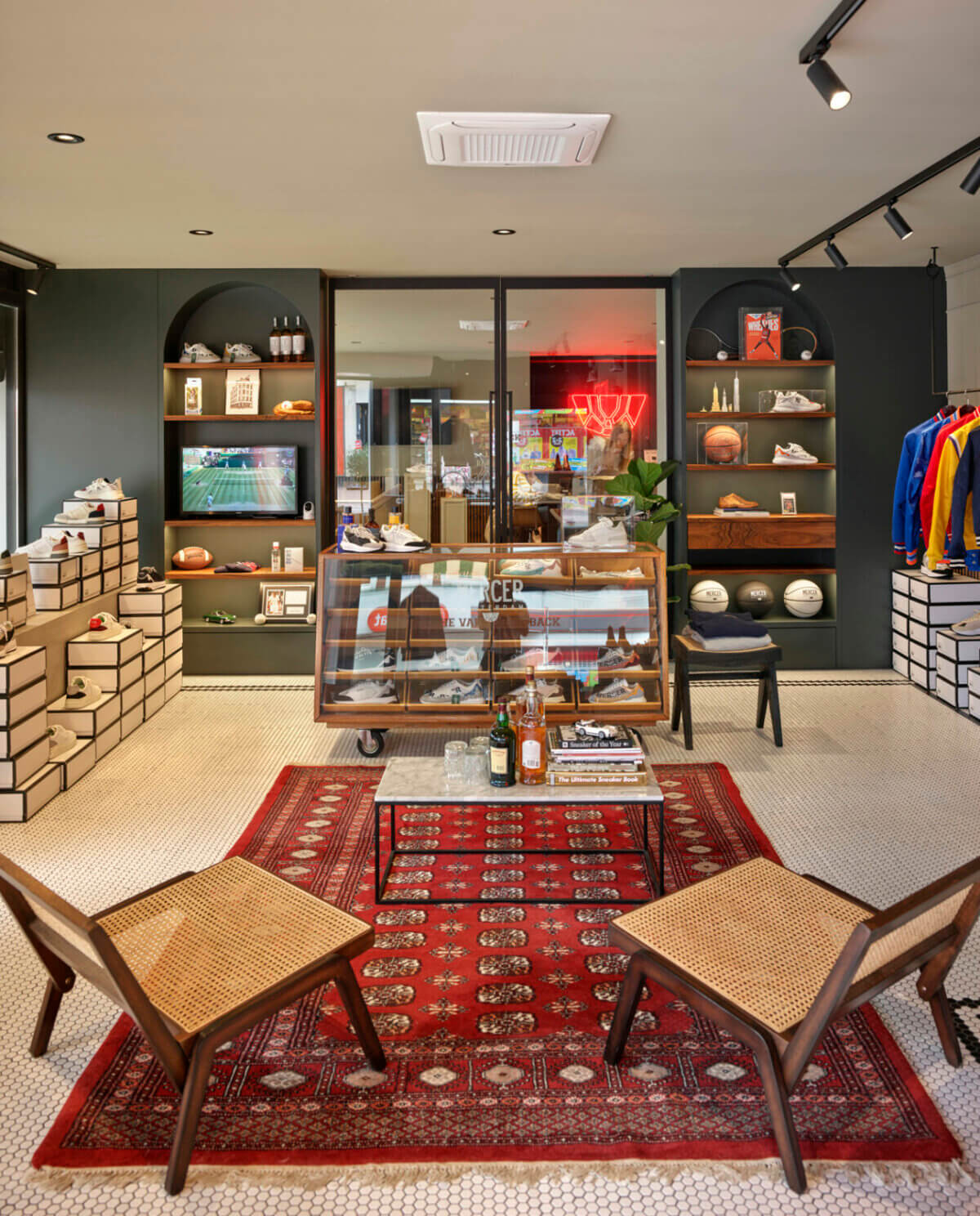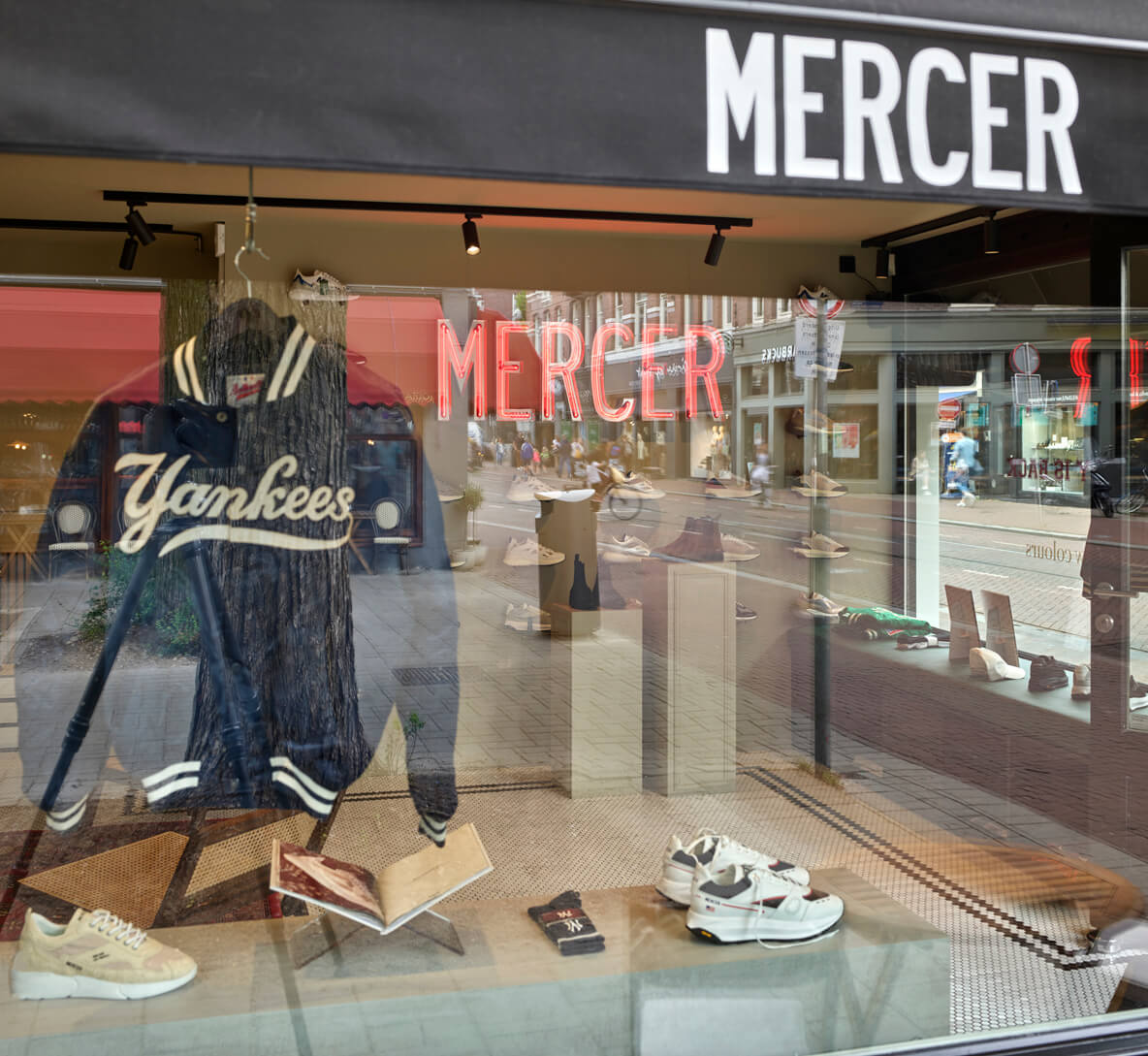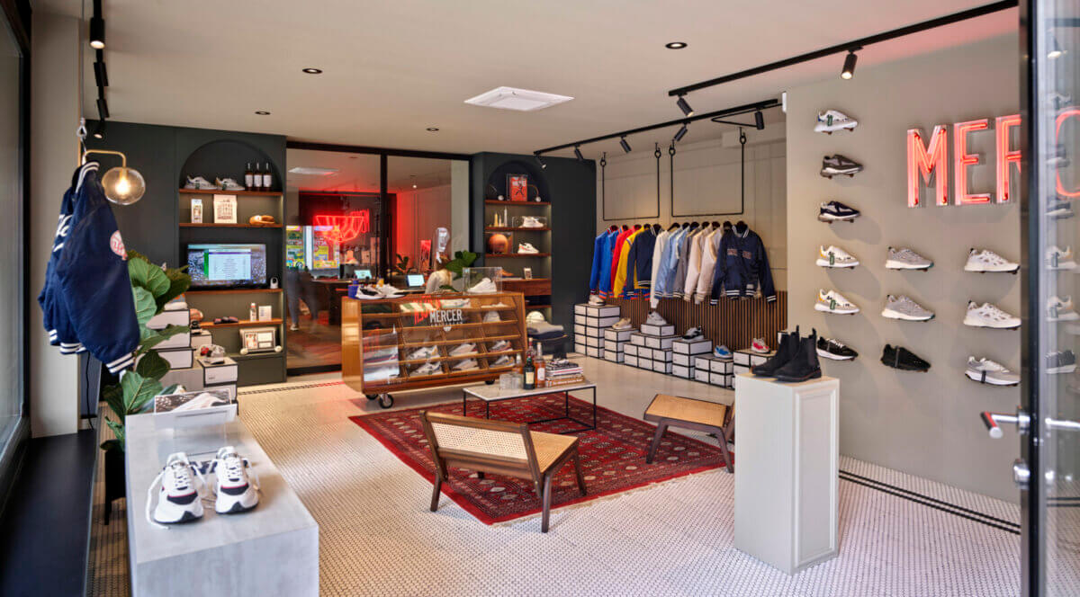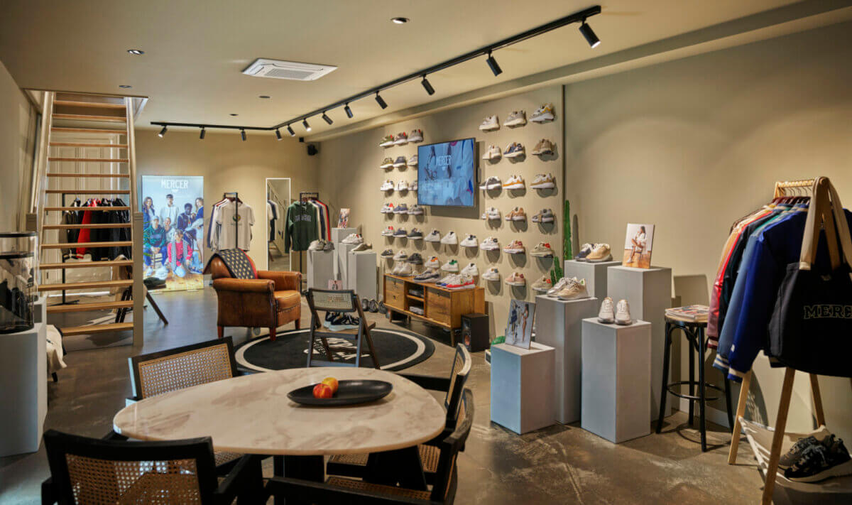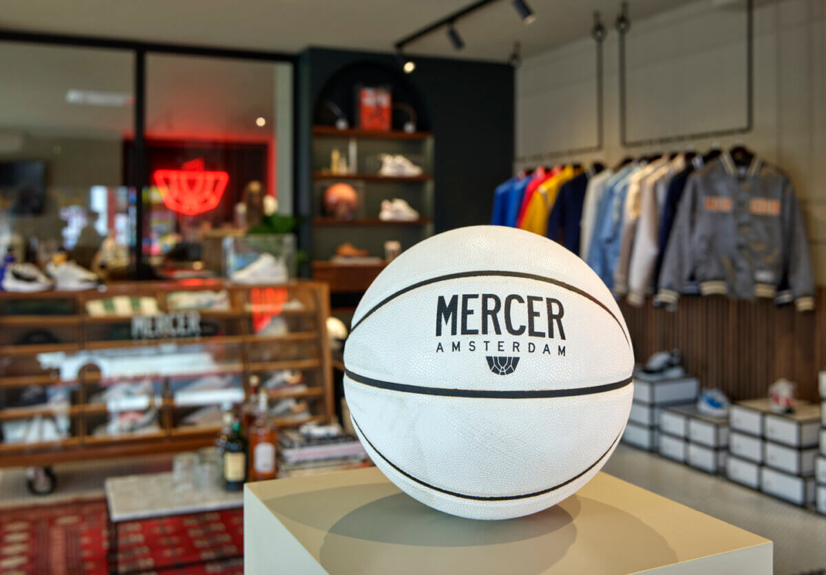 Bij het pand op de hoek van de Ferdinand Bolstraat en de Saenredamstraat zijn stijlvolle zwarte markiezen met de naam Mercer neergelaten. Binnen valt naast de sneakers en sportieve kleding, vooral de Amerikaanse sfeer van de inrichting op. Op een beeldscherm kun je de US Open volgen. Er liggen basketballen van het merk Macer op de planken. Baseballjasjes hangen verderop in de winkel. Achterin zitten een paar mooie jonge mensen achter de computer, bezig met het ontwerpen van de volgende collectie en de marketing en branding van het merk. Beneden is een ruimte ingericht voor de retail, met de collectie van het komende seizoen.