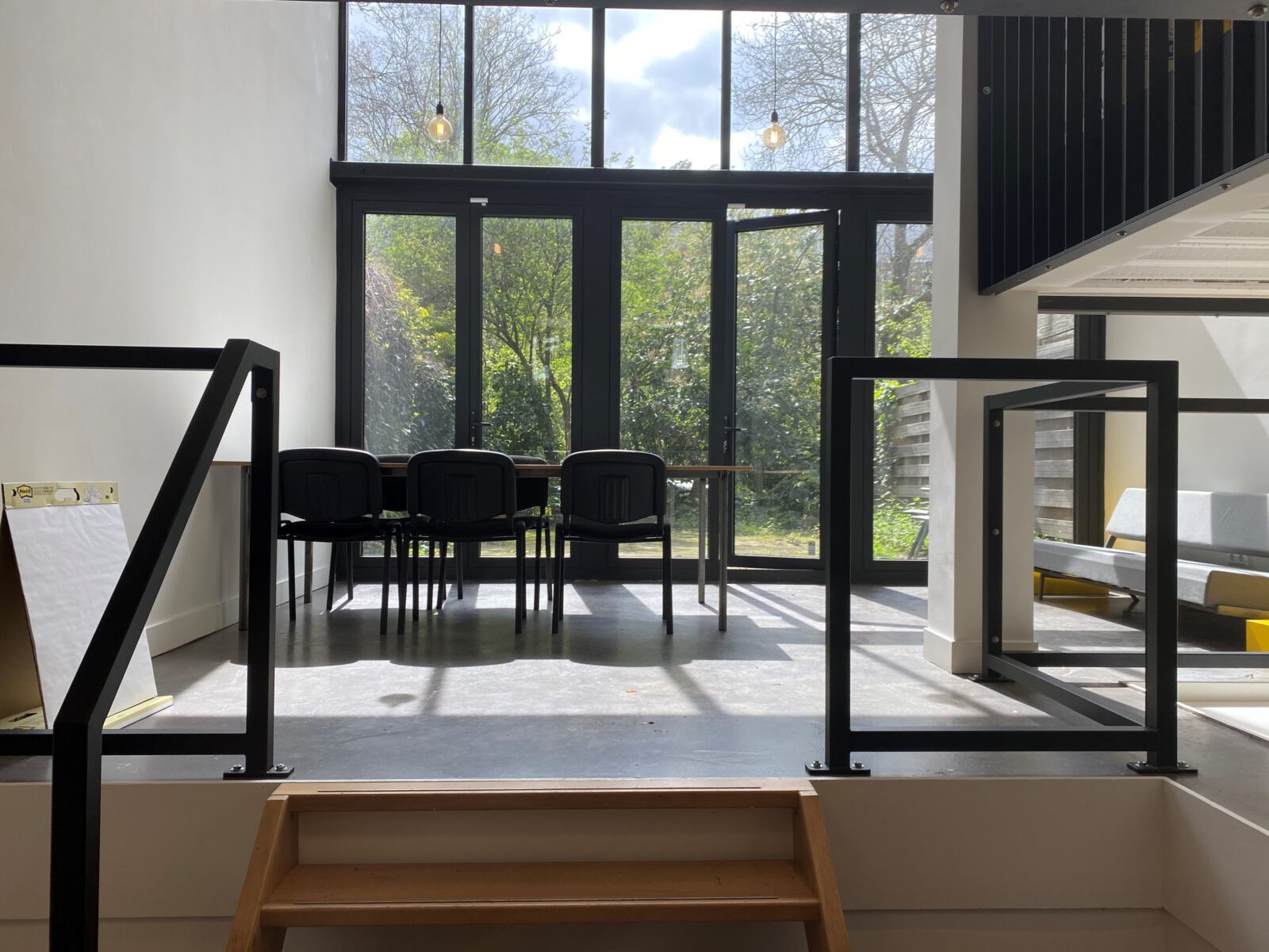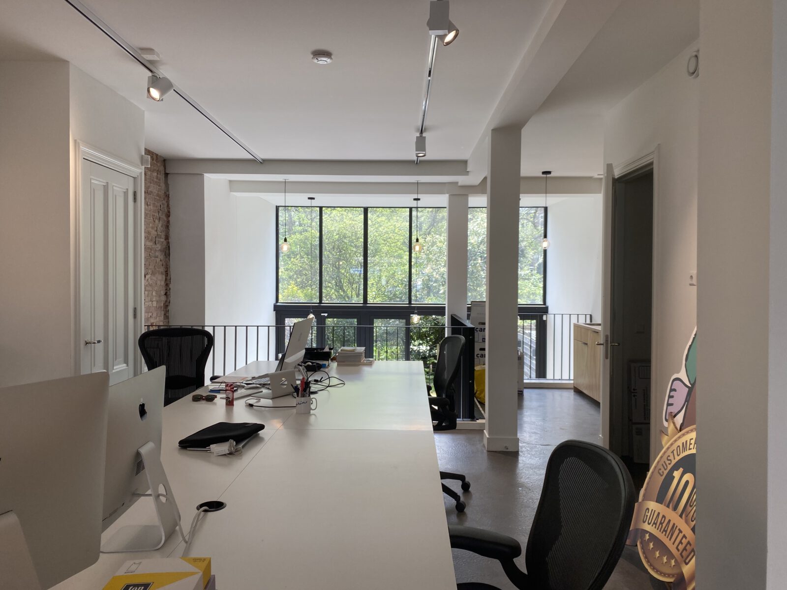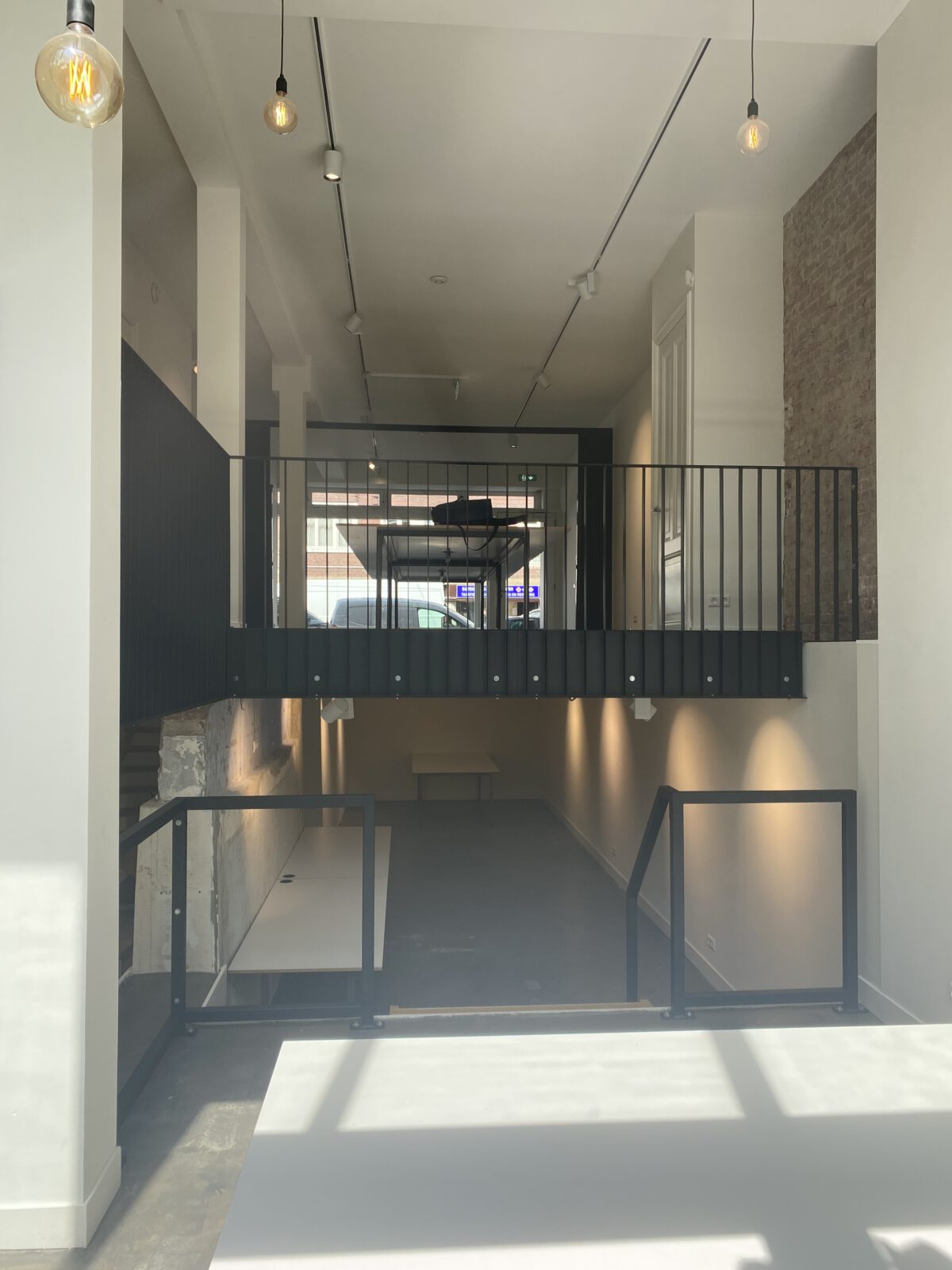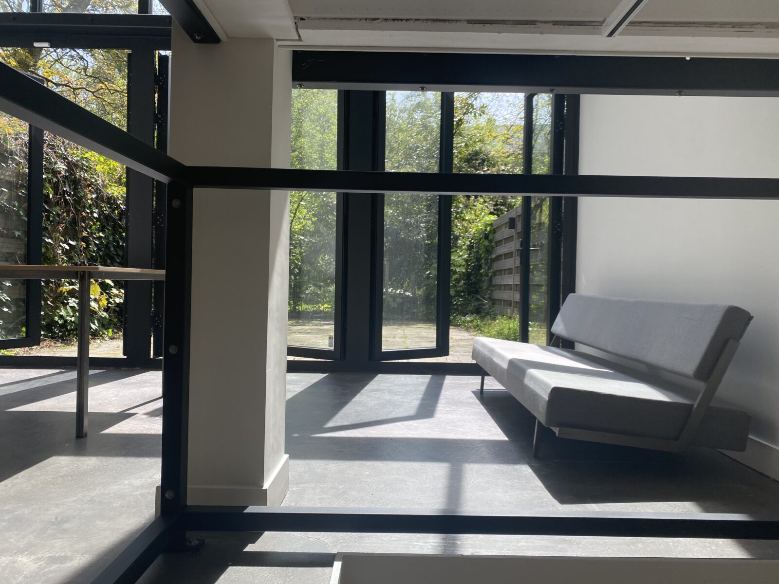 In 2018 gerenoveerde bedrijfsruimte van circa 140 m2 verdeeld over de begane grond en het souterrain. Vanuit het souterrain is er middels een prachtige pui, van zwart aluminium met hoge ramen, toegang tot de bosrijke tuin. Waar het zomers heerlijk toeven is. De casco ruimte is goed geïsoleerd en de wanden zijn gestukt en geschilderd door de vorige huurder.