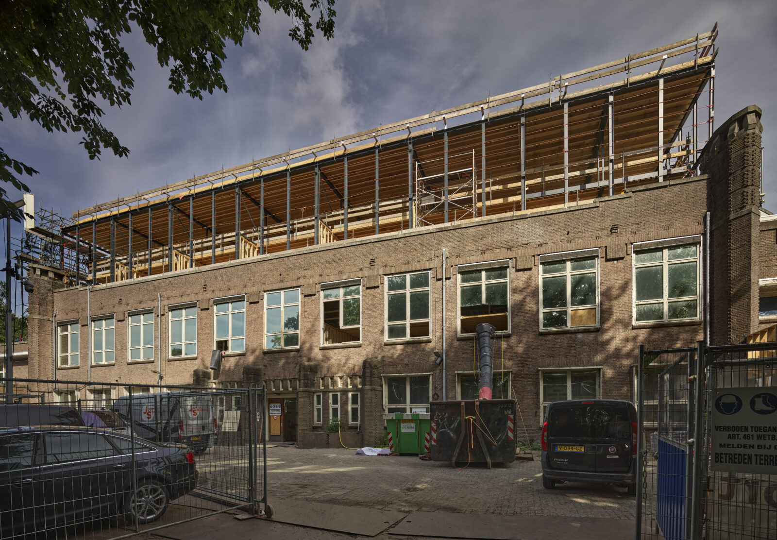 De oorspronkelijke Amsterdamse School-details en grote ramen zijn kenmerkend voor het gebouw, dat volledig wordt gerenoveerd en uitgebreid met hedendaagse opbouw. Originele details gaan hand in hand met een duurzame, moderne afwerking. De verwachte oplevering is maart 2024, maar de commerciële ruimtes zijn al eerder beschikbaar en op afspraak te bezichtigen.